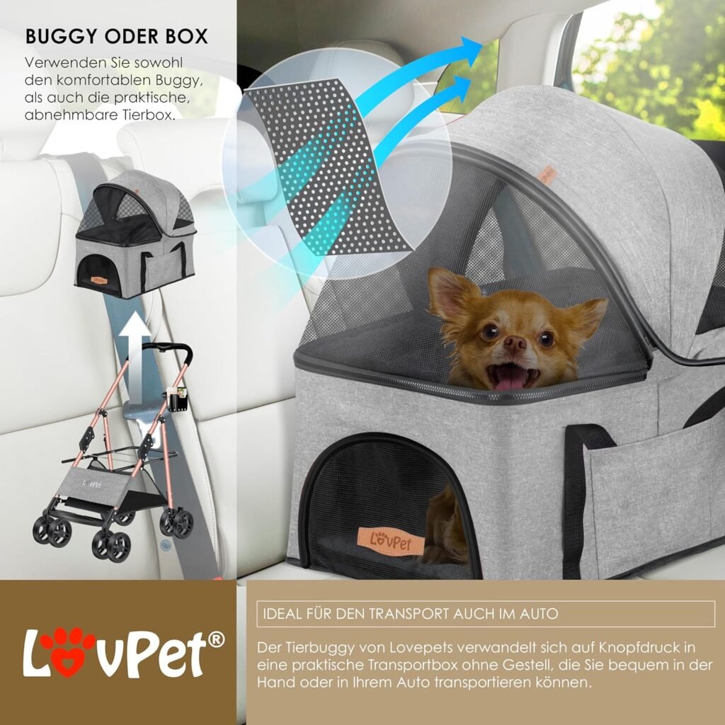El carro para perros Lovpet® 2 en 1 es una innovadora solución diseñada para facilitar el transporte de mascotas. Este producto destaca por su versatilidad, ya que funciona como un cochecito y como una caja de transporte, lo que lo convierte en una opción práctica y funcional para los dueños de perros. Es ideal para aquellos que buscan una forma cómoda de llevar a sus animales a pasear, al veterinario o en viajes más largos.